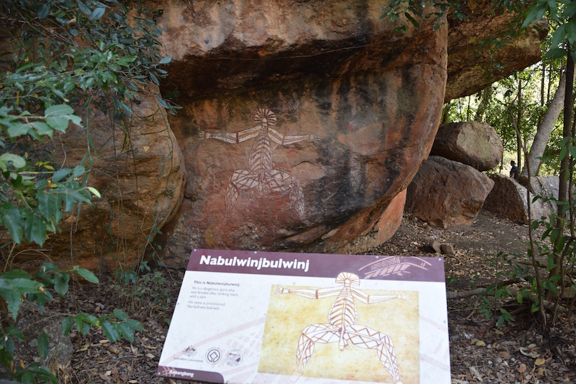 Today was rock art - no not Guns & Roses or the Rolling Stones , we were off to Anbangbang ( thats the aboriginal name ) or Nourlangie - Europeans name . The rangers do a tour explaining lots about everything , for 2 hours on Mondays , Wednesdays & Fridays in tourist season . The ranger from last nights talk ( Christian ) was the guide for today also - he is awesome - he's been working up here for 15 years and knows a bit about aboriginal culture & law , he reckons about 0.025 % of it , but highly knowledgable !! More of that later .